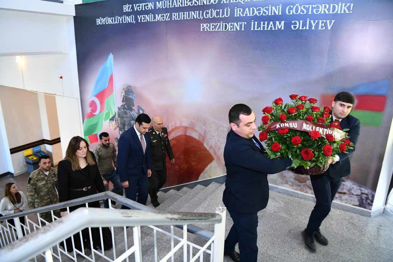 Əvvəlcə universitetin ərazisində yerləşən şəhidlərin xatirəsinə ucaldılmış abidə kompleksi ziyarət olunub, onların əziz xatirəsi ehtiramla yad edilib.