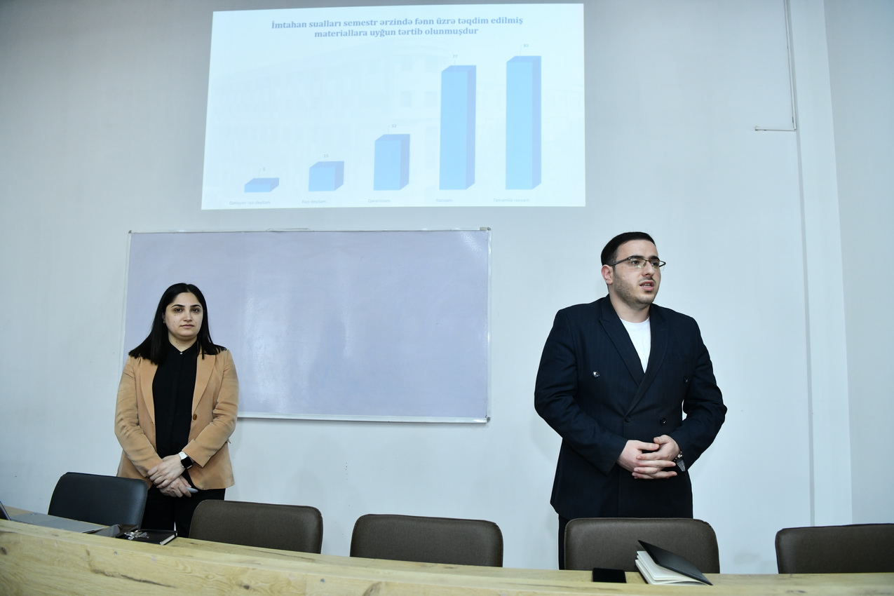 Tədbirdə tələbələrin iştirakı ilə reallaşdırılan sorğuların nəticələri təqdim olunub, həmin göstəricilər əsasında universitet rəhbərliyi tərəfindən həyata keçirilən tədbirlər barədə məlumat verilib.