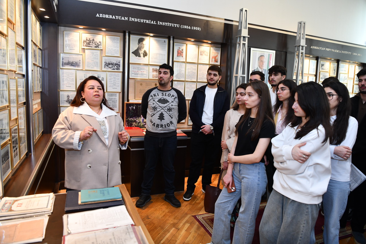 Muzeyin müdiri Ülviyyə Mirzəyevanın təşəbbüsü ilə keçirilən görüşdə tələbələrə universitetin yaranma tarixi, inkişaf mərhələləri və mühüm nailiyyətləri barədə ətraflı məlumat verilib. Tələbələr muzeyin eksponatları ilə tanış olub, universitetin tarixi ilə bağlı maraqlı faktları öyrəniblər.