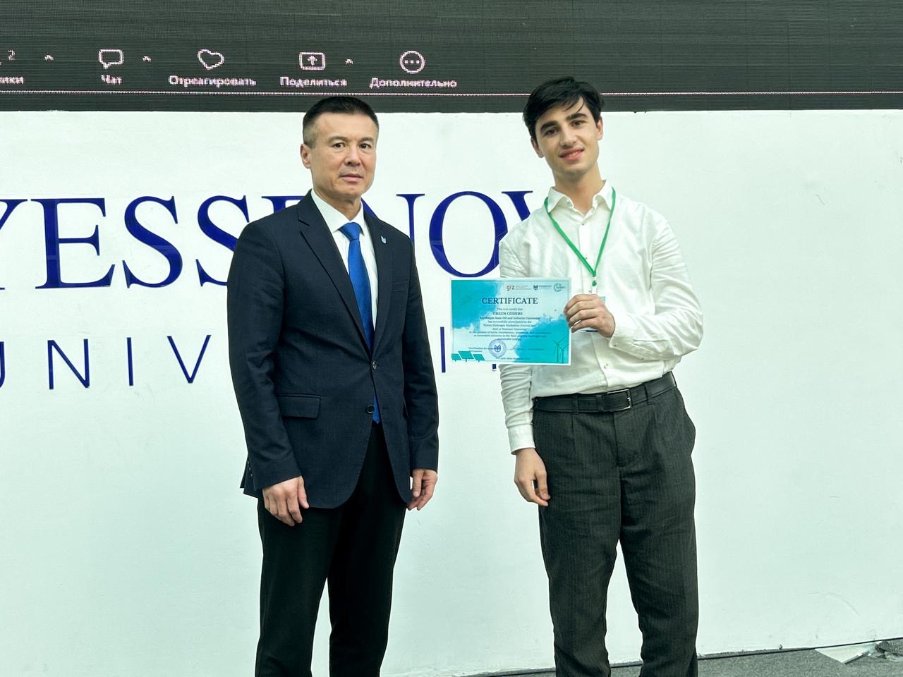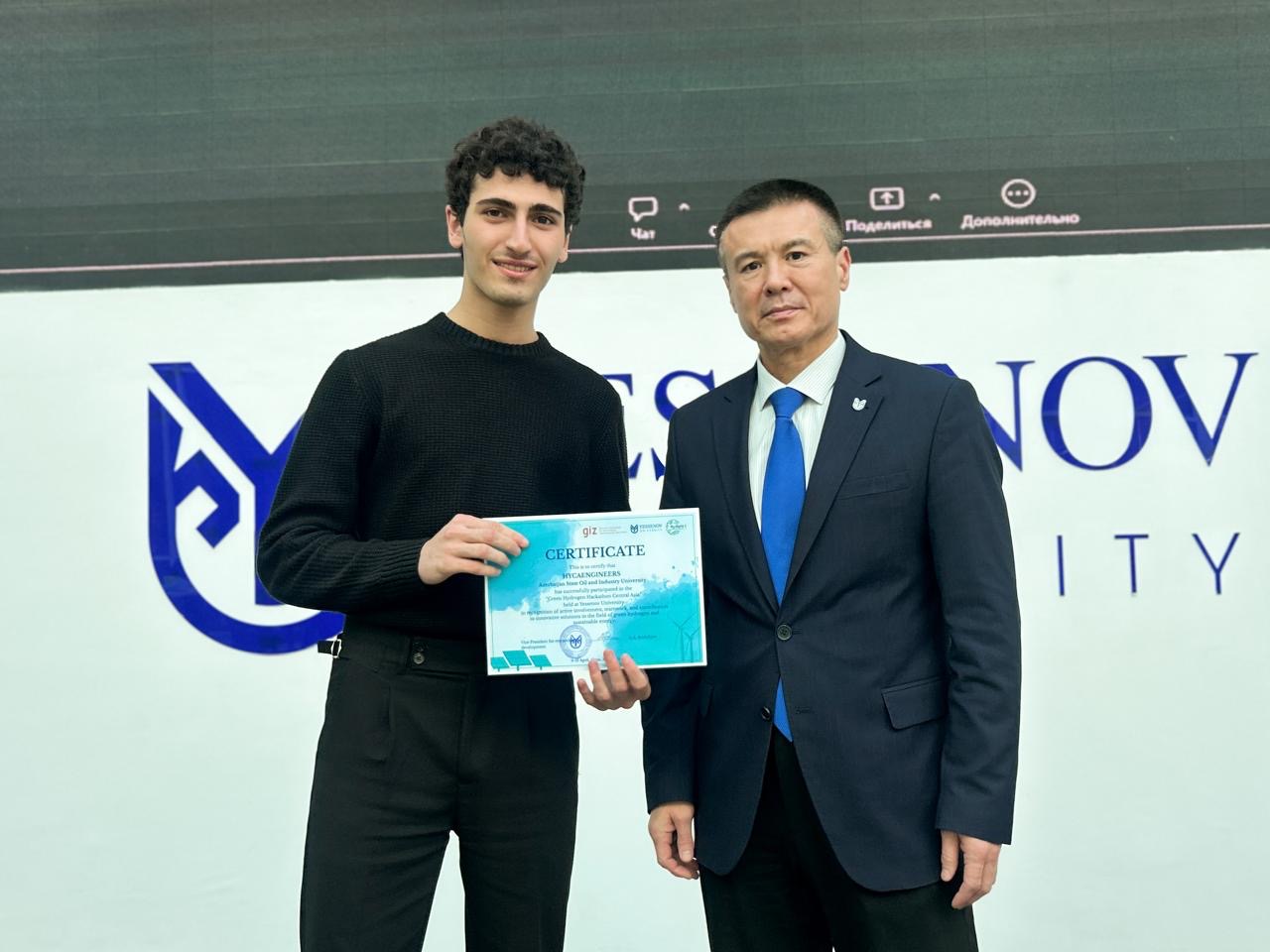 Azərbaycan Dövlət Neft və Sənaye Universitetinin (ADNSU) tələbələri 9–10 aprel tarixlərində Qazaxıstanda keçirilən beynəlxalq “Mərkəzi Asiya Yaşıl Hidrogen Hakatonu”nda (Green Hydrogen Hackathon Central Asia) uğurla çıxış edərək birinci yerə layiq görülüblər.