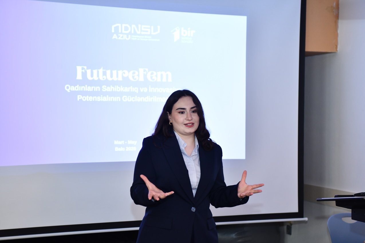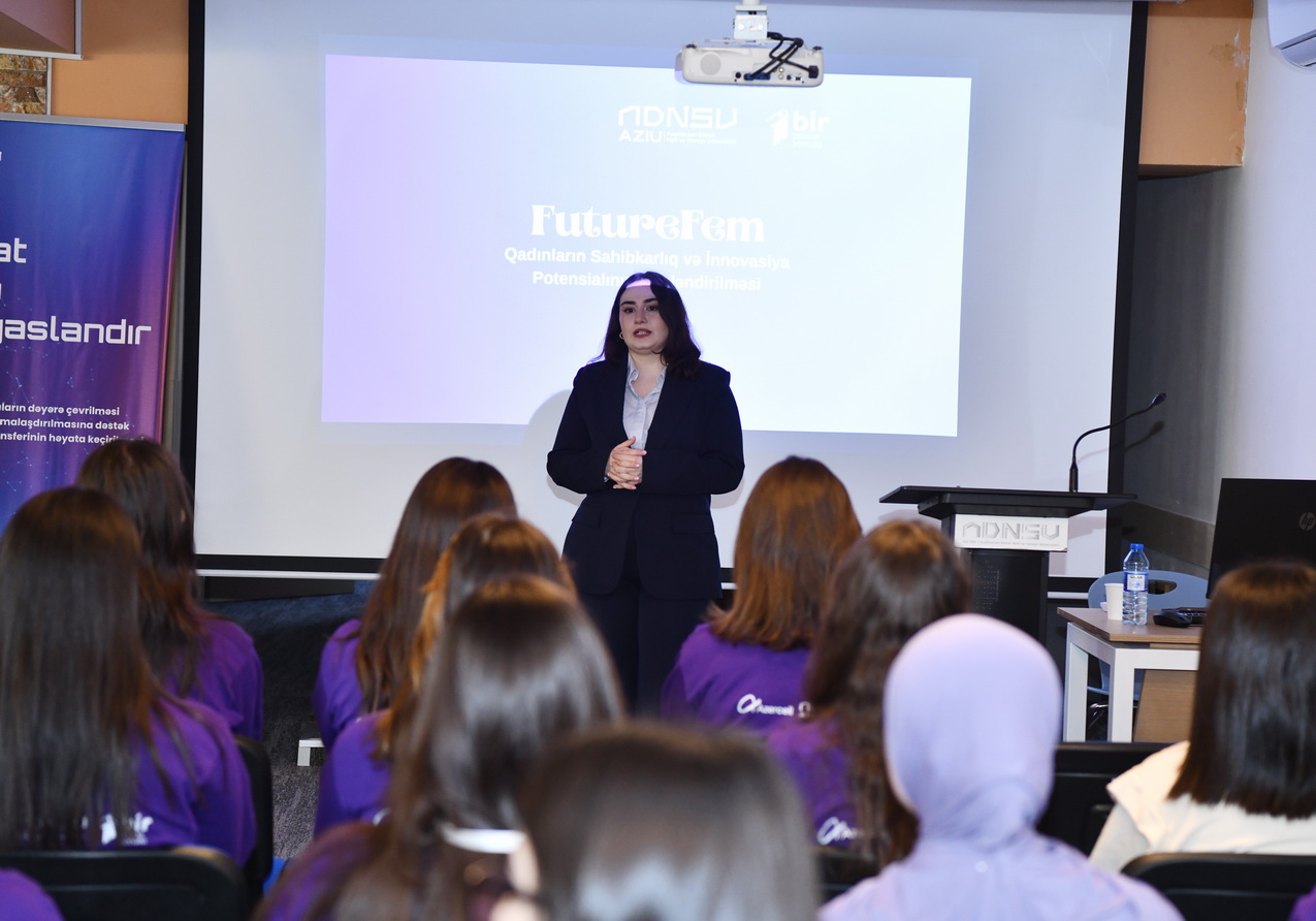 Azərbaycan Dövlət Neft və Sənaye Universitetində (ADNSU) Qadınların sahibkarlıq düşüncəsini gücləndirməyi və innovativ ideyaları real biznes modellərinə çevirməyi hədəfləyən “FutureFem 2.0 – Qadınların sahibkarlıq və innovasiya potensialının artırılması” layihəsi çərçivəsində növbəti təlim görüşü uğurla həyata keçirilib.
