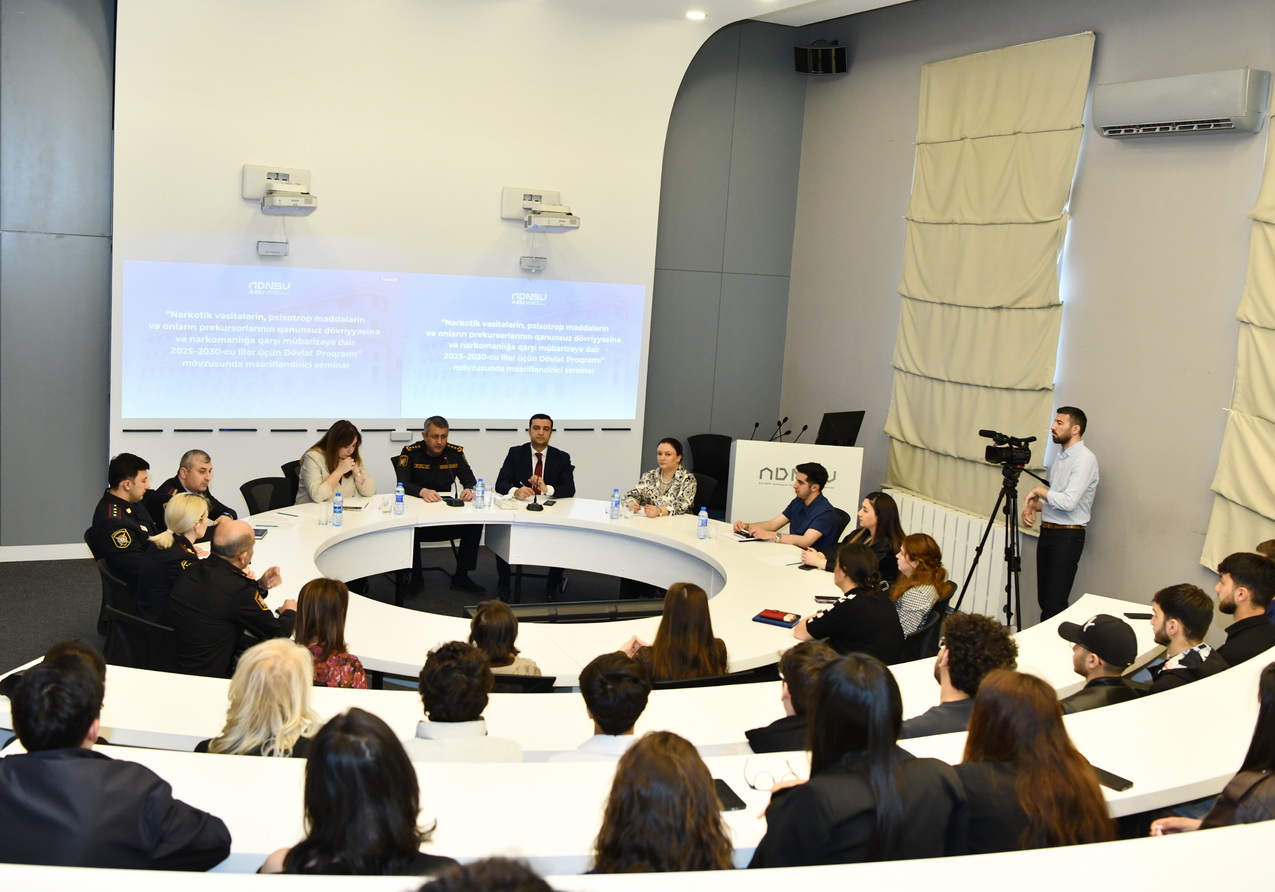 Aprelin 16-da Azərbaycan Dövlət Neft və Sənaye Universitetində (ADNSU) Nəsimi Rayon Polis İdarəsi ilə birgə “Narkotik vasitələrin, psixotrop maddələrin və onların prekursorlarının qanunsuz dövriyyəsinə və narkomanlığa qarşı mübarizəyə dair 2025–2030-cu illər üçün Dövlət Proqramı” çərçivəsində maarifləndirici seminar təşkil olunub.