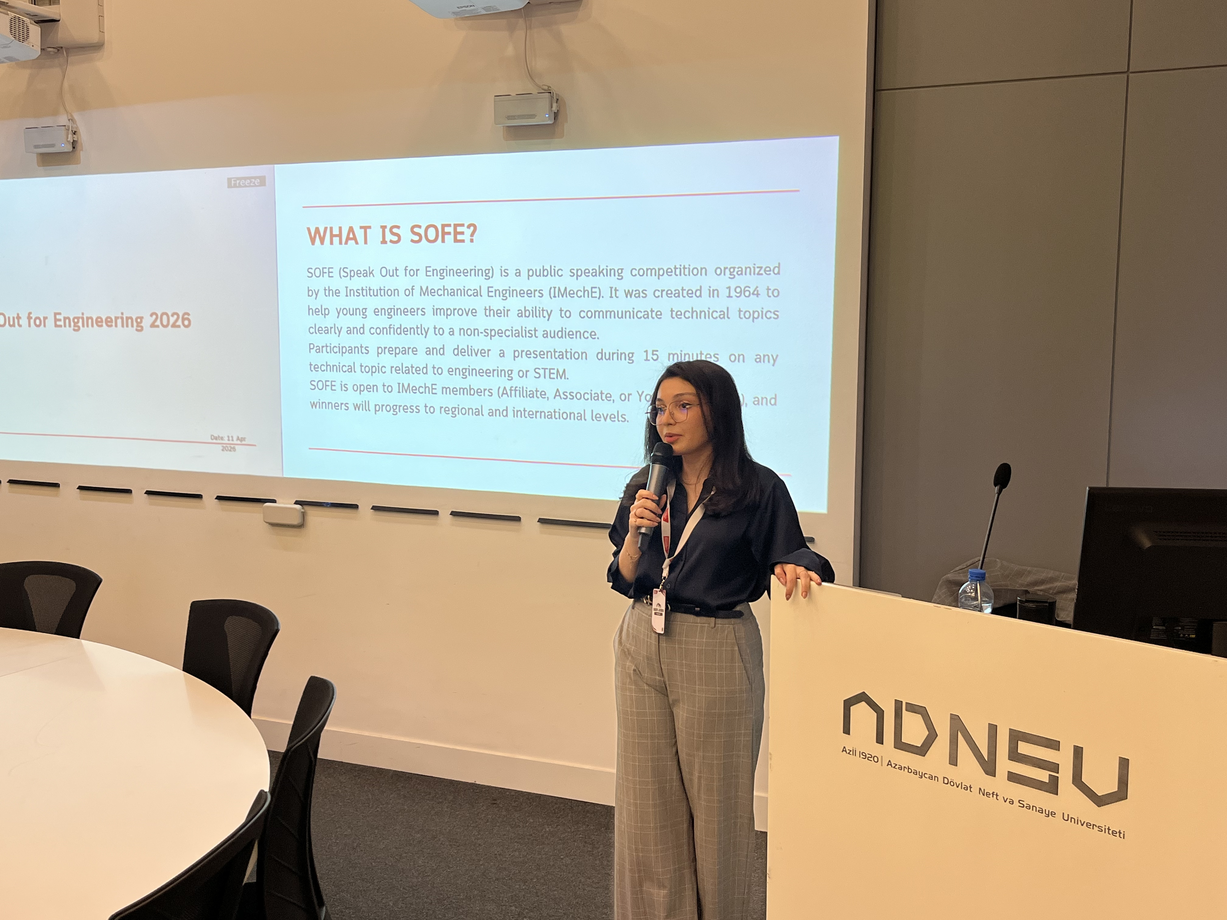 Azərbaycan Dövlət Neft və Sənaye Universitetinin və ADNSU nəzdində fəaliyyət göstərən UFAZ-ın tələbələri “Speak Out for Engineering (SOFE) 2026” milli mərhələsində uğurla iştirak ediblər.