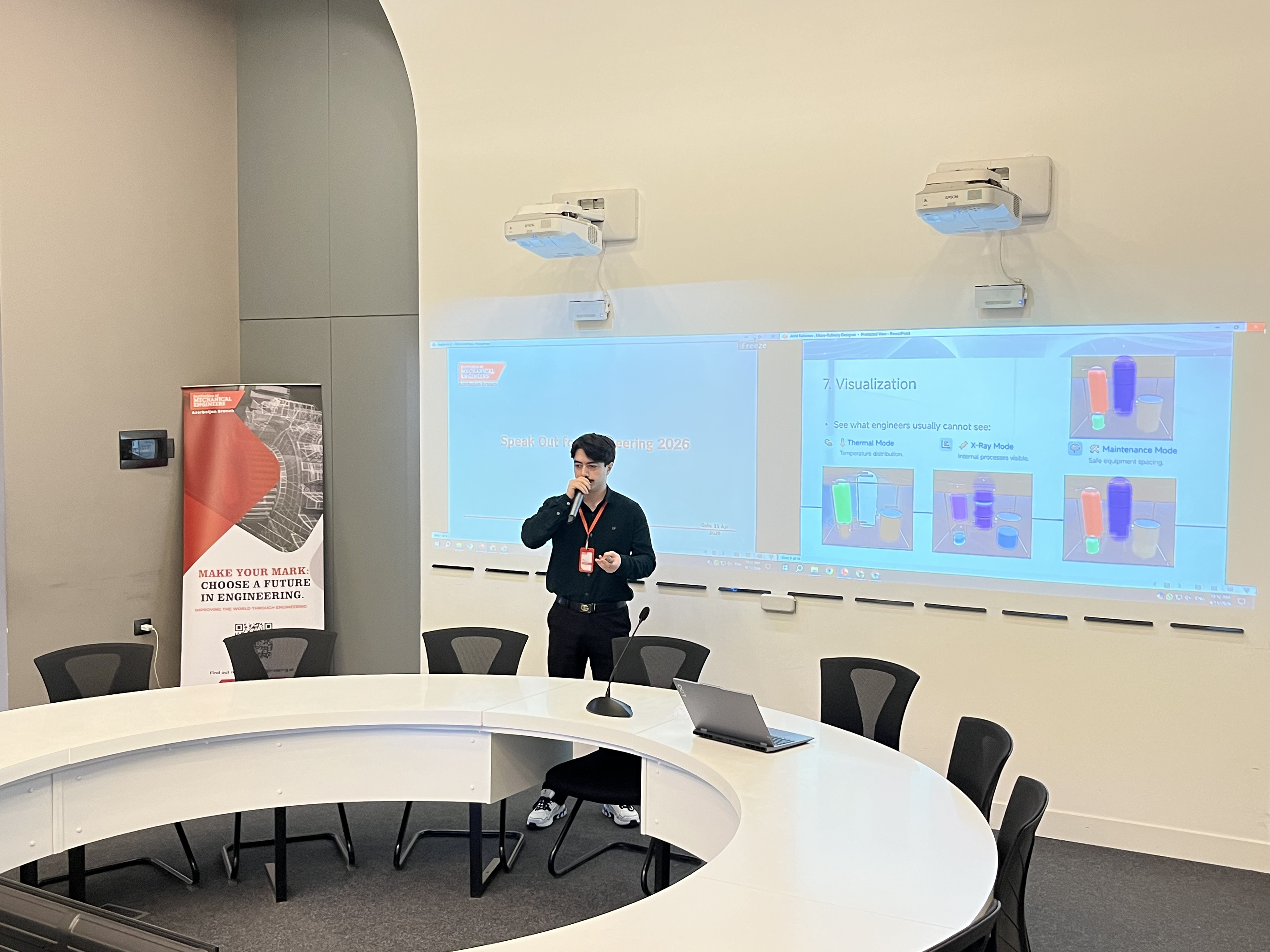 Qlobal mühəndislik yarışmasının Azərbaycan finalı bu il IMechE Azerbaijan Branch-ı və ADNSU Məzunlarla iş və karyera mərkəzinin dəstəyi ilə təşkil olunaraq gənc mühəndislərə öz ideyalarını və ictimai çıxış bacarıqlarını nümayiş etdirmək üçün əhəmiyyətli platforma yaratdı.