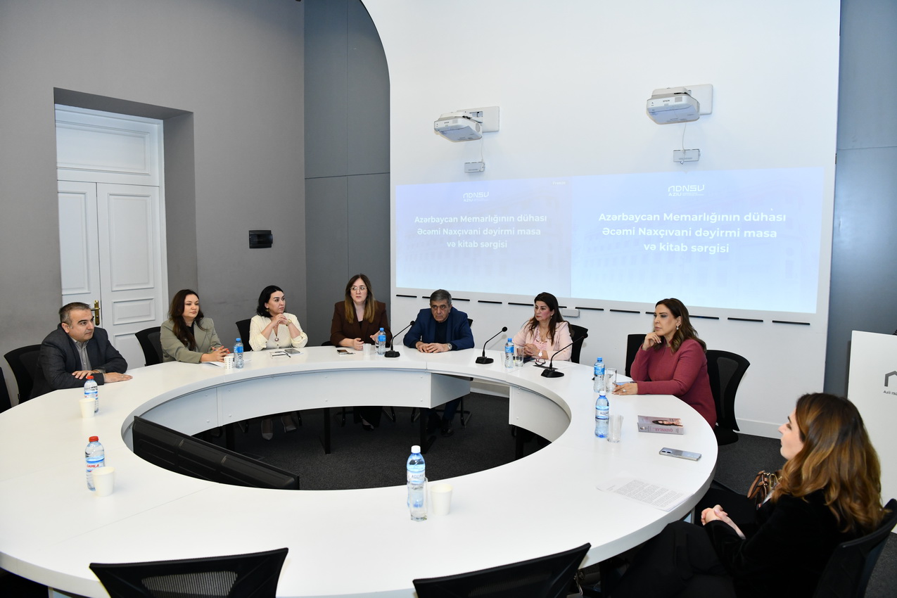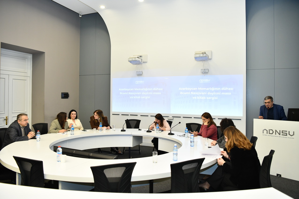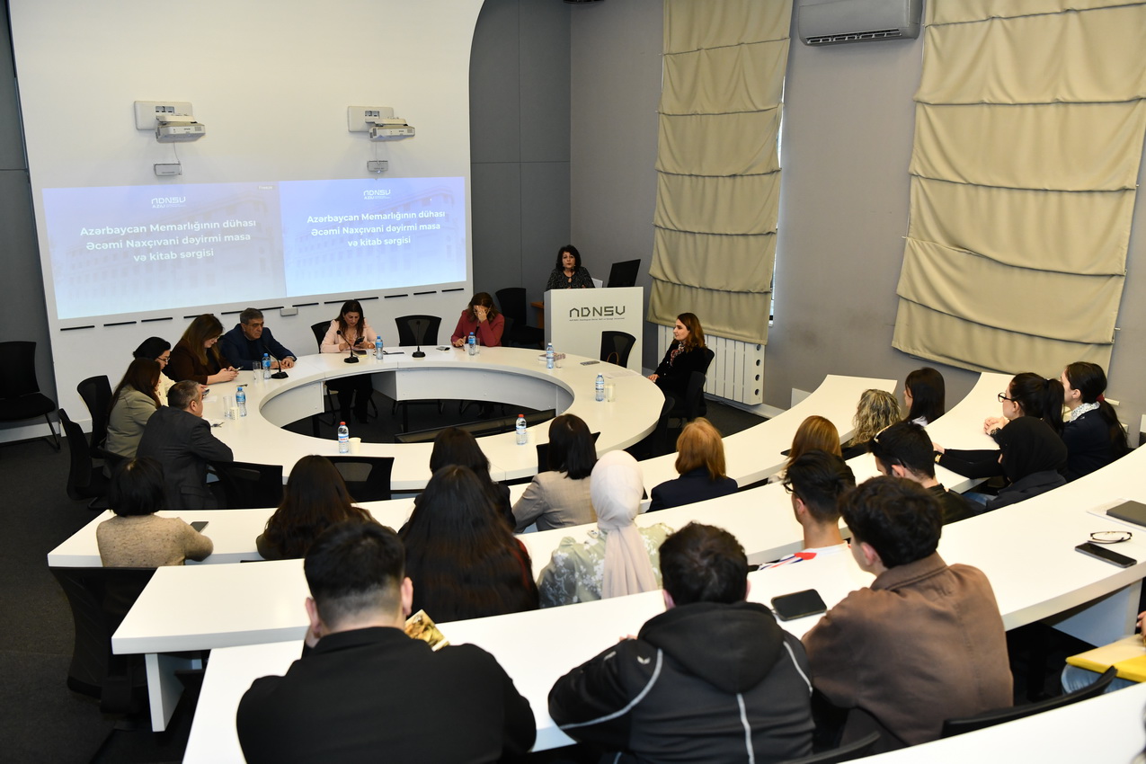 Tədbiri giriş sözü ilə açan ADNSU-nun Kitabxana İnformasiya Mərkəzinin müdiri Səlahət Mahmudova çıxışında Prezident İlham Əliyevin 22 dekabr 2025-ci il tarixli sərəncamı, eləcə də görkəmli memar Əcəmi Naxçıvaninin 900 illik yubileyinin qeyd olunması və 2026-cı ilin ölkədə “Şəhərsalma və memarlıq ili” elan edilməsi barədə tədbir iştirakçılarına məlumat verib. O bildirib ki, keçirilən tədbir sözügedən sərəncamın icrası çərçivəsində təşkil olunan silsilə tədbirlərin tərkib hissəsidir.