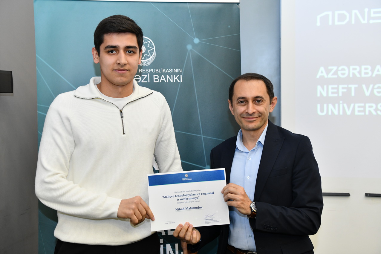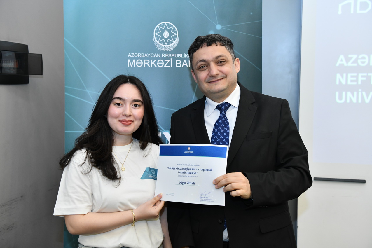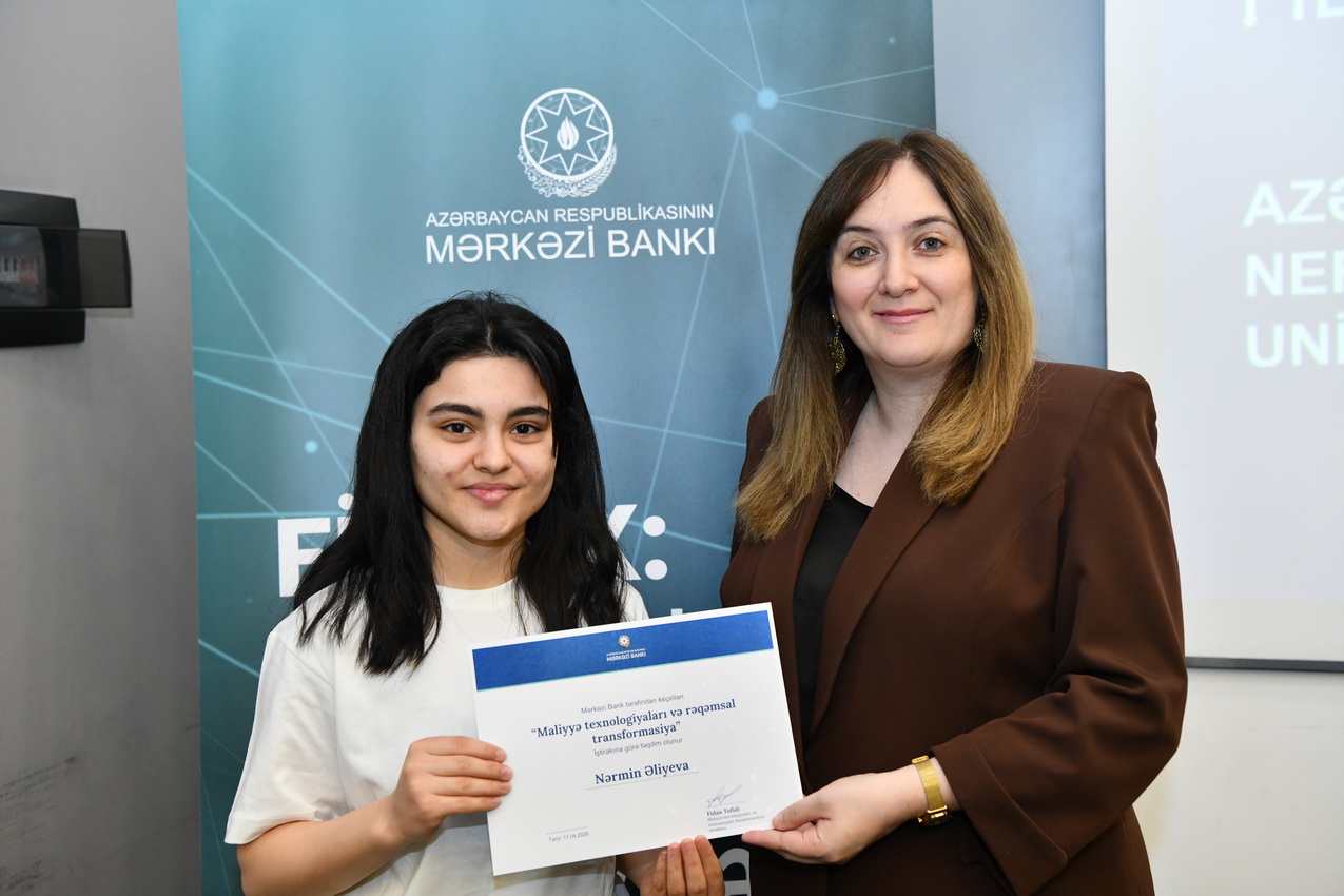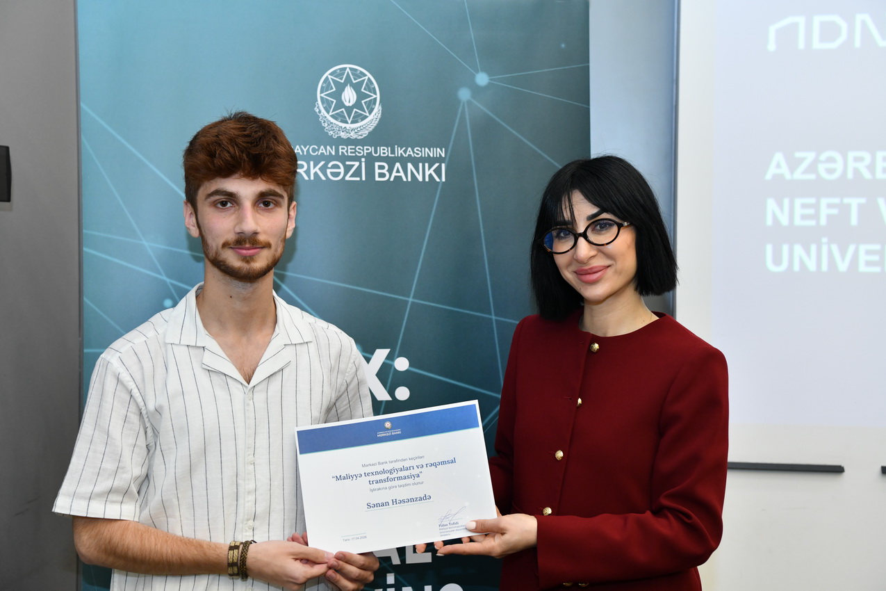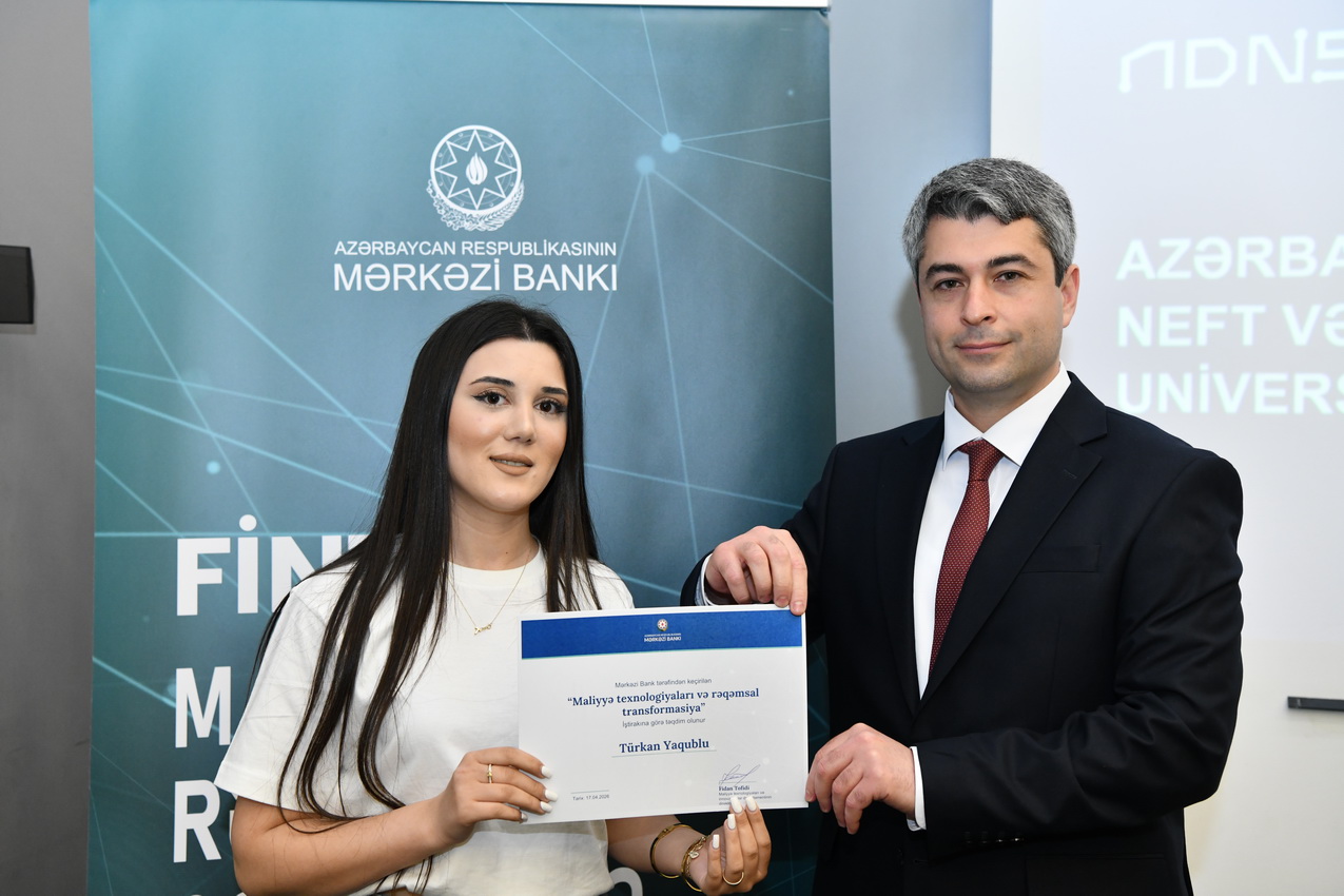 Yekun mərhələdə tələbələr əldə etdikləri biliklər əsasında hazırladıqları təqdimatlarla çıxış edərək müasir maliyyə texnologiyaları və rəqəmsal transformasiya sahəsində yanaşmalarını nümayiş etdiriblər.