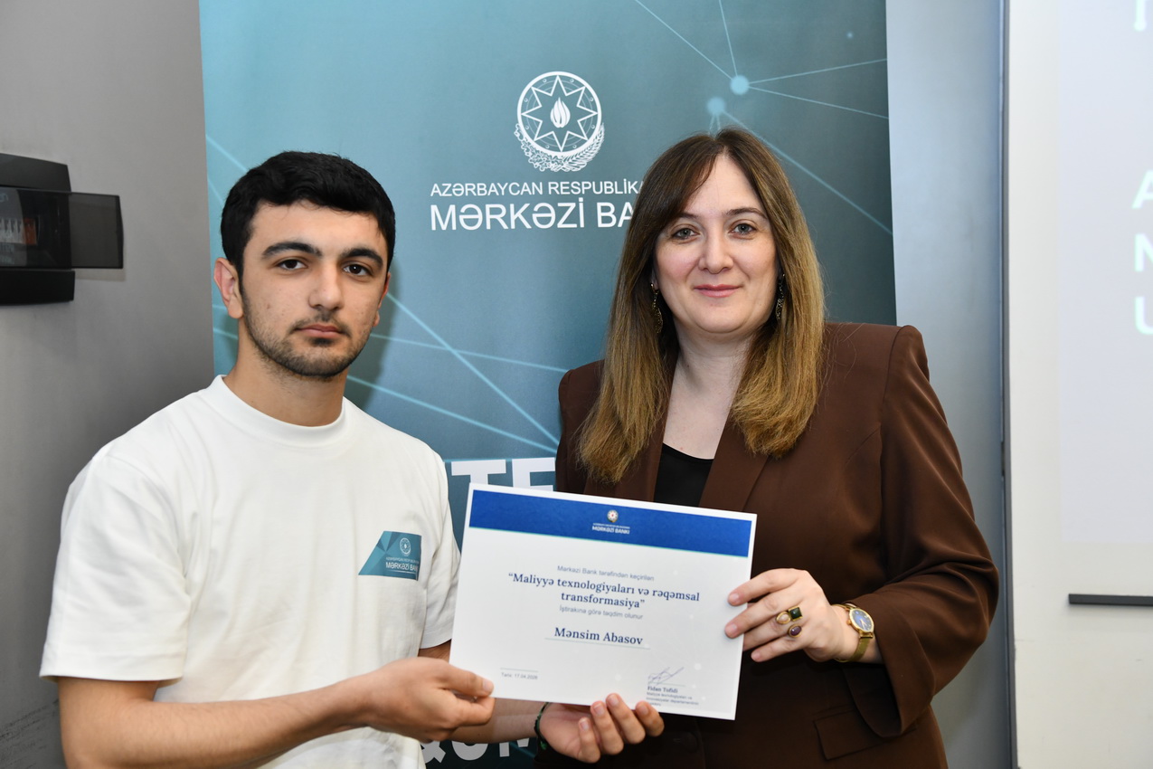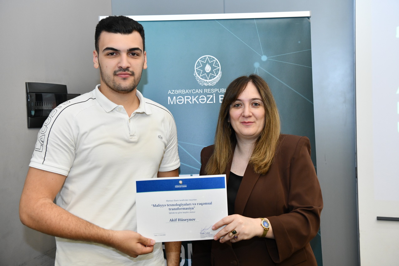 Sonda təlimi uğurla başa vuran iştirakçılara Mərkəzi Bank tərəfindən rəsmi sertifikatlar təqdim olunub.