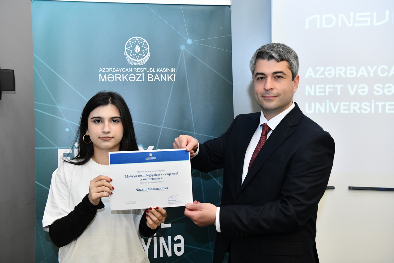Azərbaycan Dövlət Neft və Sənaye Universitetidə (ADNSU) tələbələr üçün təşkil olunan “Maliyyə texnologiyaları və rəqəmsal transformasiya” mövzusunda ödənişsiz təlim proqramı uğurla başa çatıb.