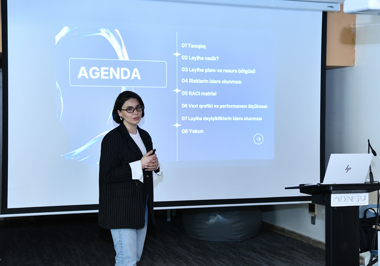 Azərbaycan Dövlət Neft və Sənaye Universitetində (ADNSU) həyata keçirilən “IDEALISE 2” inkubasiya proqramı çərçivəsində “Layihələrin idarəedilməsi və risk analizi” mövzusunda təlim keçirilib. Təlim Strategiya və Biznes Layihə meneceri Asiya Rüstəmova tərəfindən aparılıb.