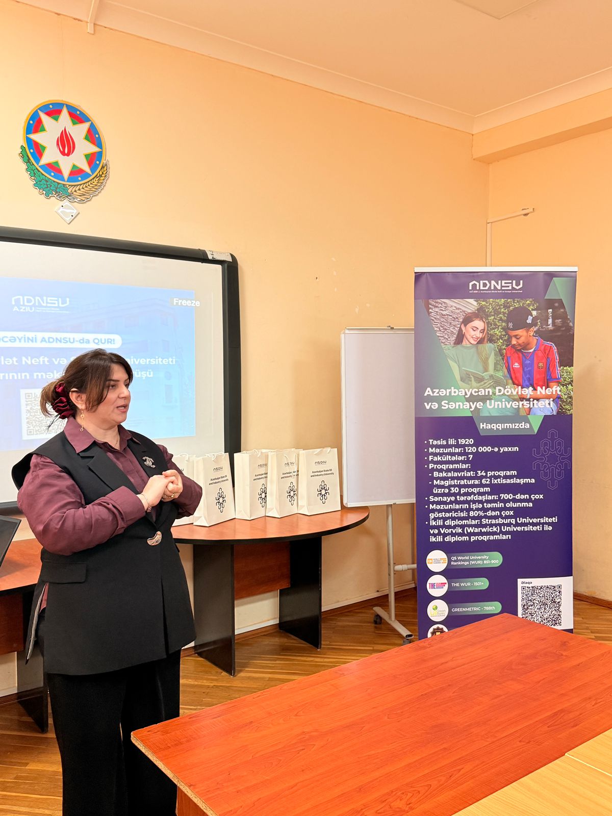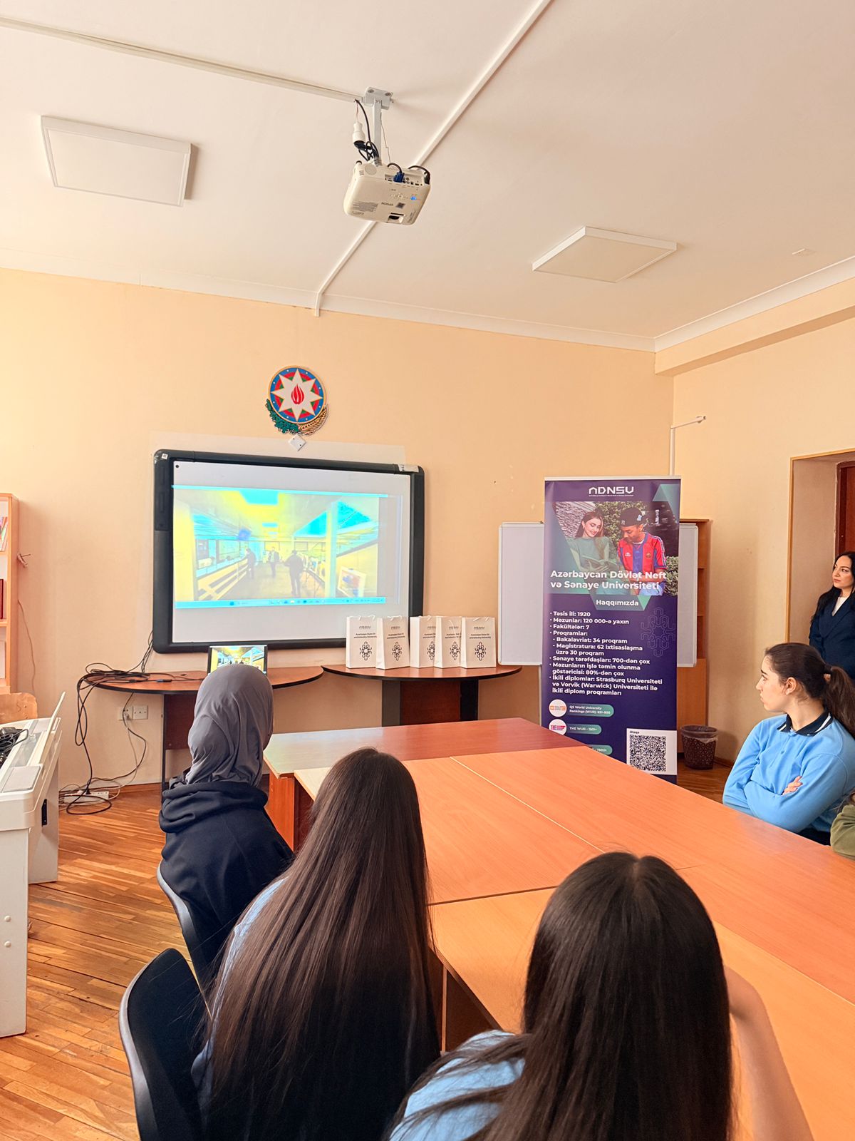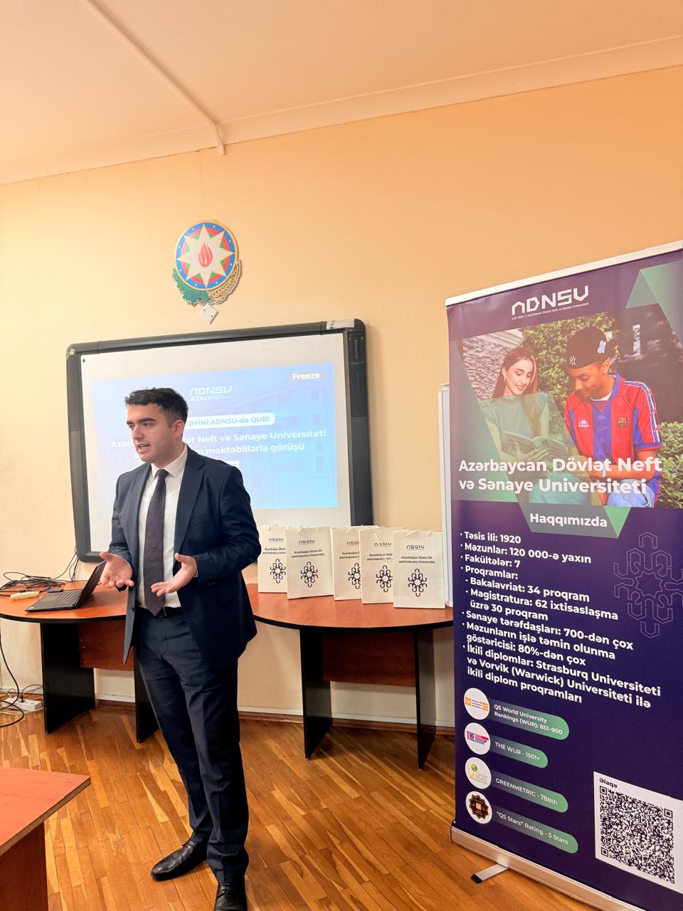 Görüşlər zamanı ADNSU haqqında tanıtım videosu nümayiş olunub. Daha sonra universitetin imkanları, ikili diplom proqramları, beynəlxalq əlaqələri, ixtisaslar və tələbə həyatı barədə iştirakçılara ətraflı məlumat verilib.