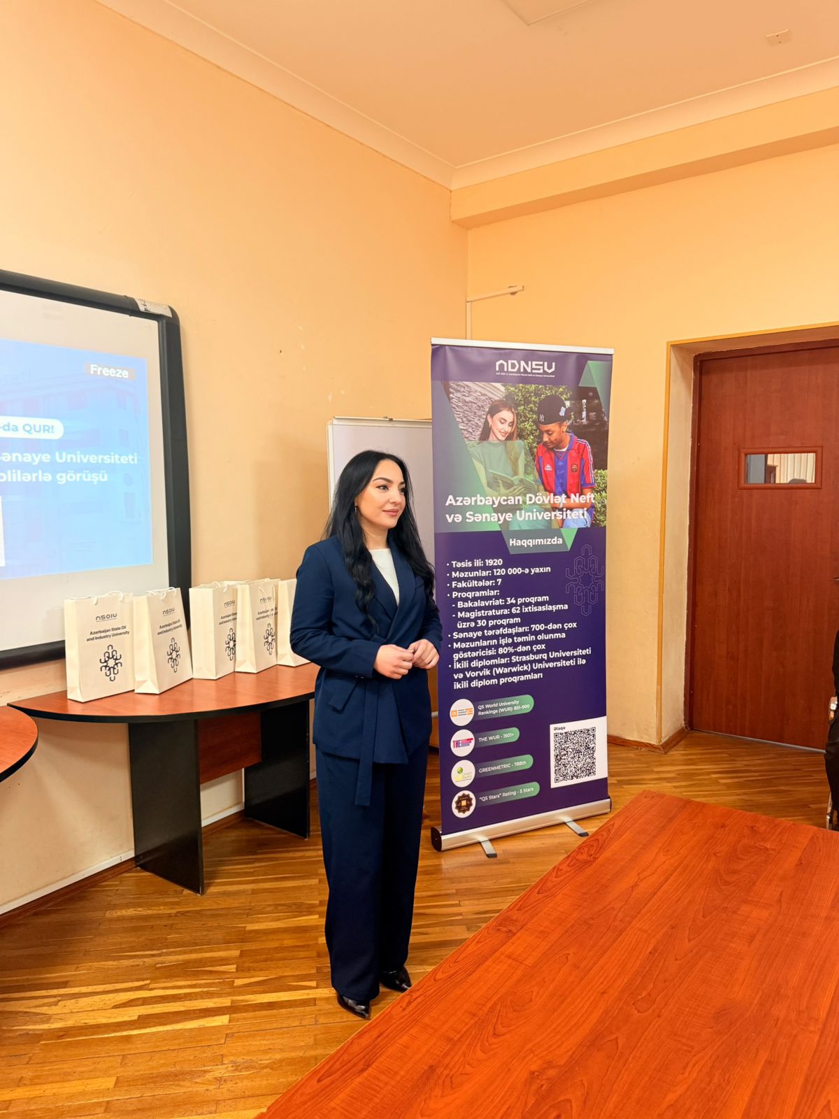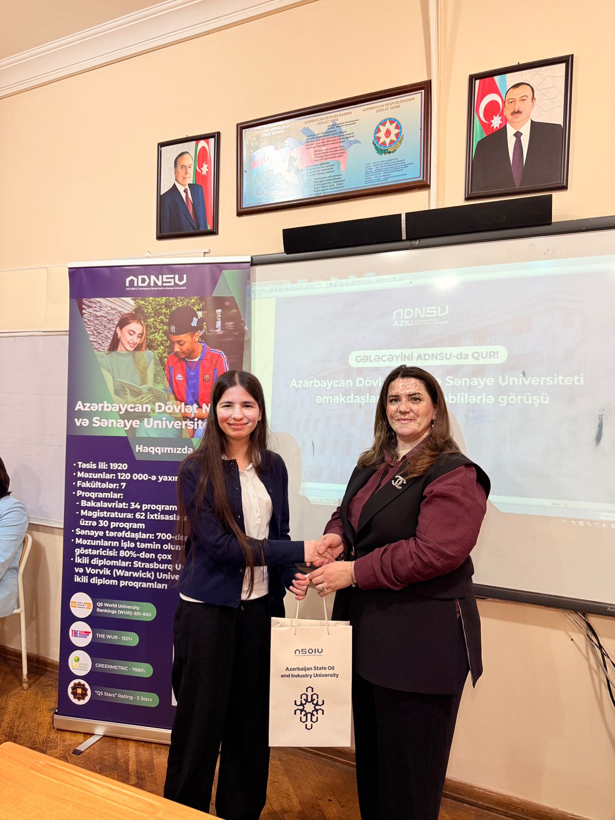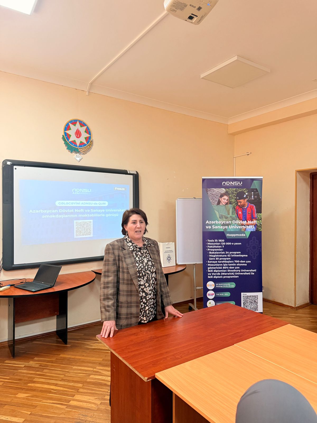 Görüşlər zamanı ADNSU haqqında tanıtım videosu nümayiş olunub. Daha sonra universitetin imkanları, ikili diplom proqramları, beynəlxalq əlaqələri, ixtisaslar və tələbə həyatı barədə iştirakçılara ətraflı məlumat verilib.