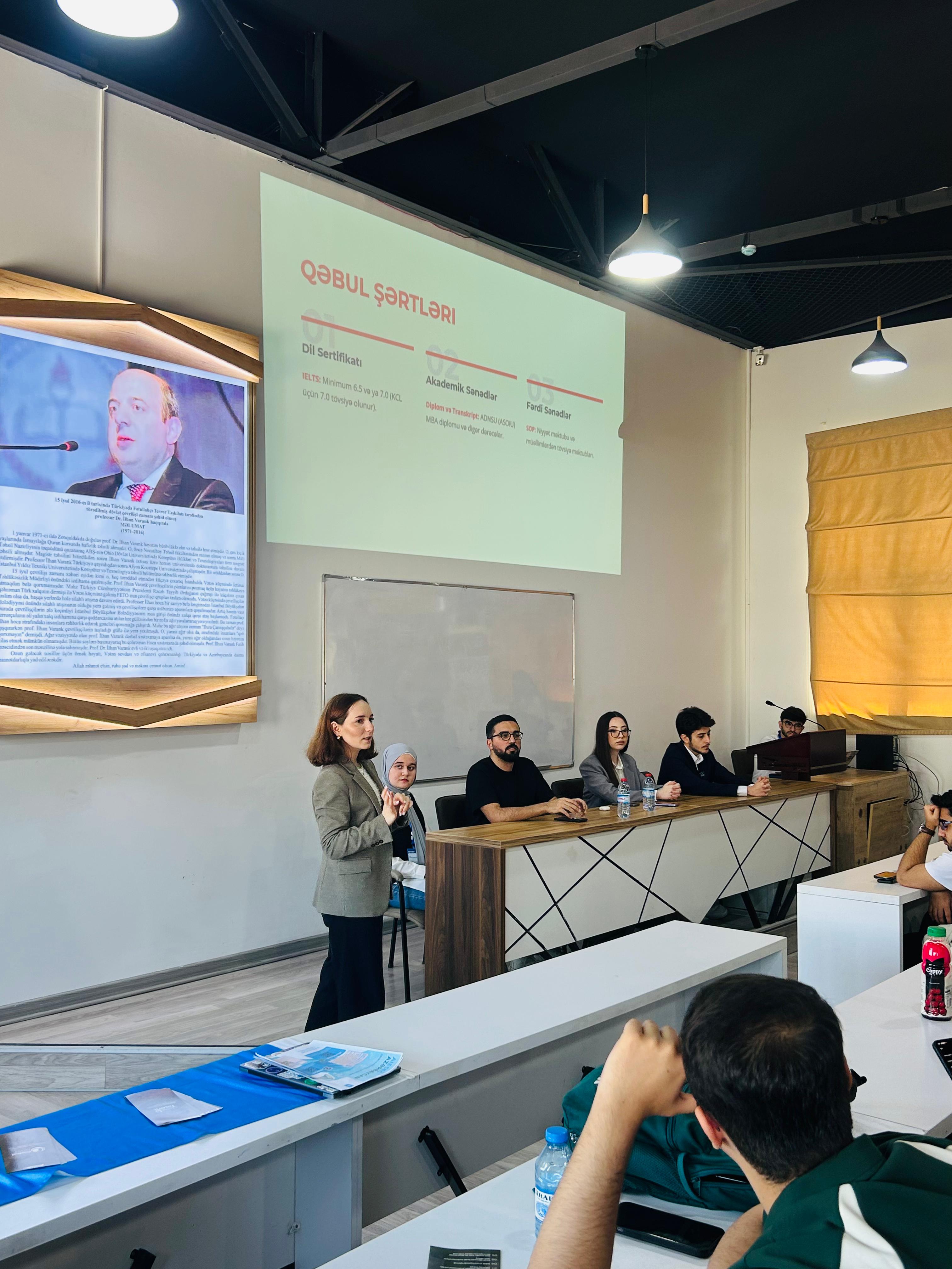 Tədbirdə dövlət proqramları və xarici universitetlərin təqaüd imkanları, müraciət prosesi, tələb olunan sənədlər və seçim zamanı nəzərə alınmalı əsas məqamlar barədə ətraflı məlumat verilib. Spikerlər şəxsi təcrübələrini bölüşərək iştirakçılara praktik tövsiyələr təqdim ediblər.
