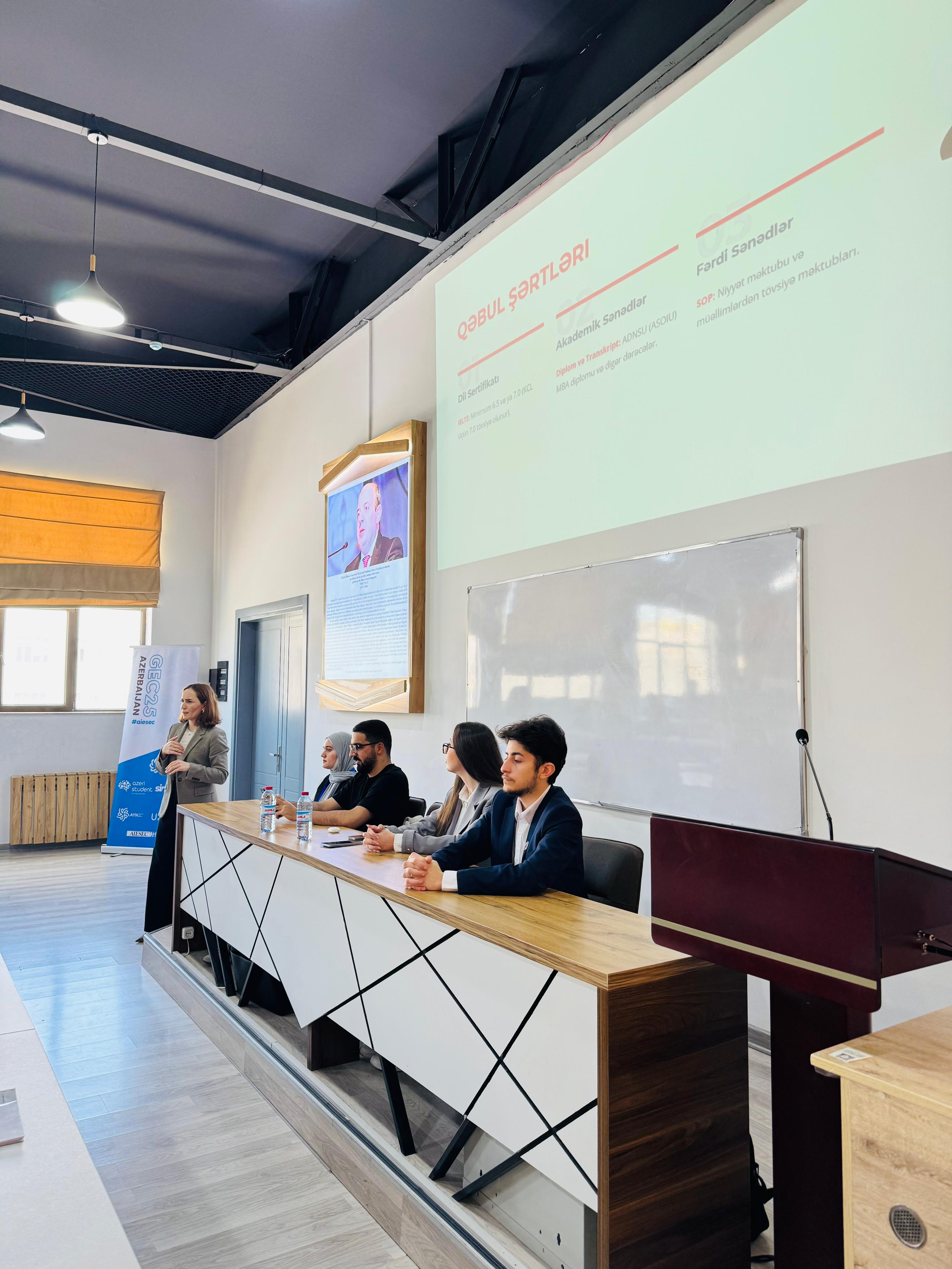 Azərbaycan Dövlət Neft və Sənaye Universitetində (ADNSU) Tələbə Elmi Cəmiyyəti və AIESEC klubunun birgə təşkilatçılığı ilə xaricdə təhsil imkanlarına həsr olunmuş tədbir keçirilib.