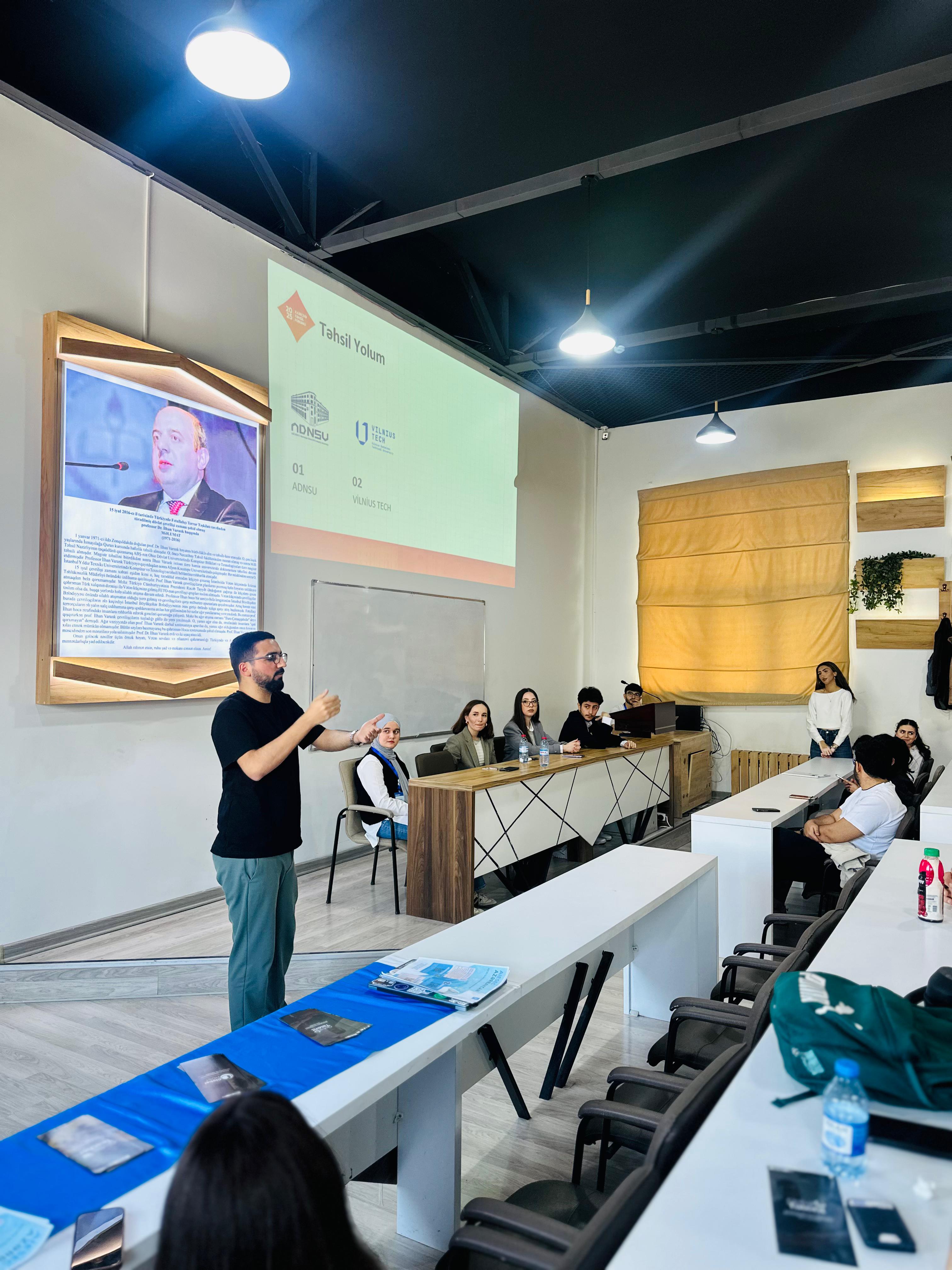 Tədbirin qonaqlarından olan ADNSU məzunu və Dövlət Proqramı iştirakçısı Aygün Səmədli də öz təhsil yolunu və qazandığı təcrübələri tələbələrlə bölüşüb. O, Dövlət Proqramına qəbul prosesi, İngiltərədə təhsil imkanları, həmçinin proqramın şəxsi və karyera inkişafına təsiri barədə ətraflı məlumat verib.