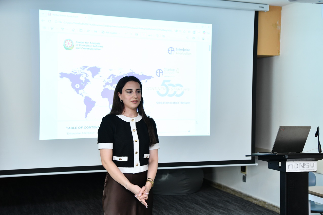 Tədbirdə “Enterprise Azerbaijan” portalının rəhbəri İsa Qasımov, spiker Aydan Hüseynzadə və universitetin Startup və TTO şöbəsinin müdiri Əhməd Əhmədzadə çıxış edərək iştirakçılara proqram haqqında ətraflı məlumat veriblər.