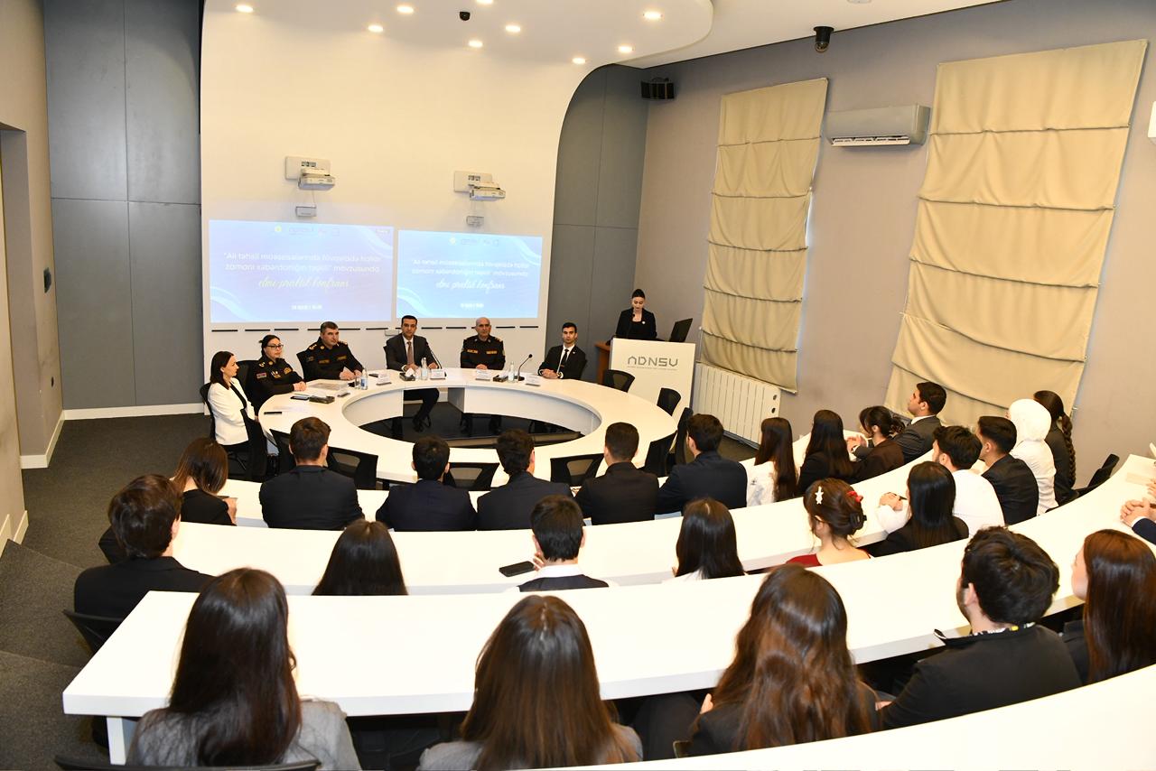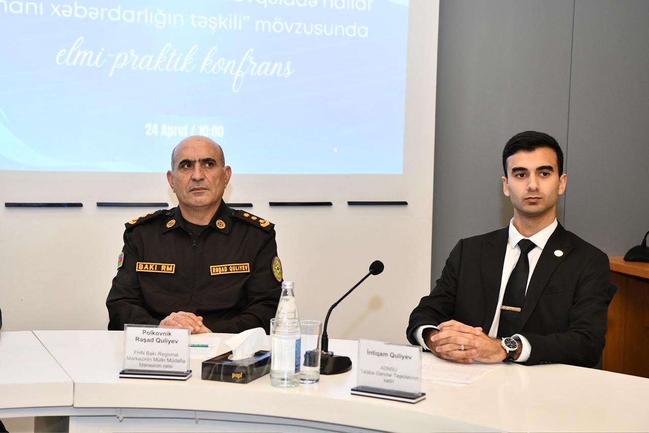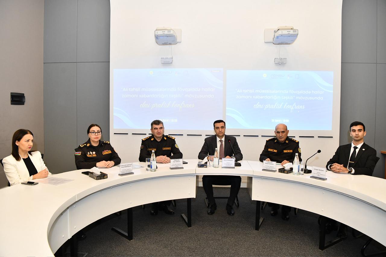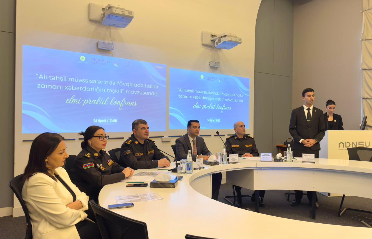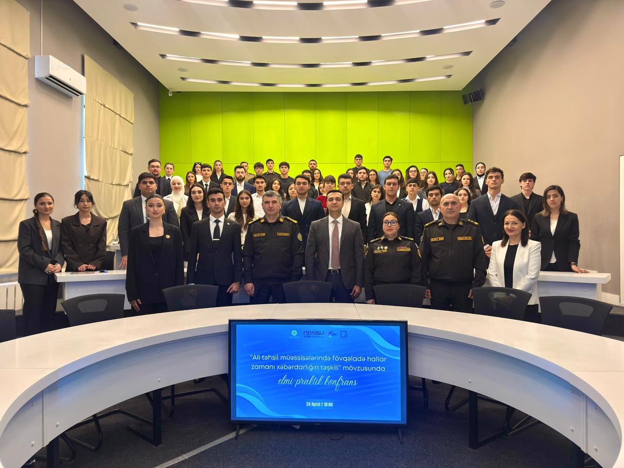 Azərbaycan Dövlət Neft və Sənaye Universitetində (ADNSU) Fövqəladə Hallar Nazirliyinin Bakı Regional Mərkəzi və Azərbaycan Tələbə Gənclər Təşkilatları İttifaqının (ATGTİ) birgə təşkilatçılğı, həmçinin ADNSU-nun Tələbə Gənclər Təşkilatının (TGT) dəstəyi ilə “Ali təhsil müəssisələrində fövqəladə hallar zamanı xəbərdarlığın təşkili” mövzusunda elmi-praktik konfrans keçirilib.
